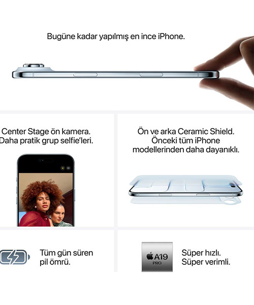 iPhone Air, sadece bir akıllı telefon değil, aynı zamanda Apple’ın mühendislik gücünün bir göstergesi. Ultra ince tasarım, güçlü A19 Pro çipi, gelişmiş Fusion kamera sistemi, uzun pil ömrü ve Apple Intelligence entegrasyonu ile iPhone Air, 2025’in en çok konuşulan akıllı telefonu olmaya aday. Hem tasarımıyla hem de performansıyla ayrışan iPhone Air, ince ama güçlü bir cihaz isteyen teknoloji severler için mükemmel bir tercih olacak.