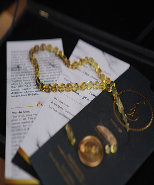 Bahri Bülbül Yakut Altın İşlemeli Tek Kaya Kaliningrad Damla Kehribar Tespih